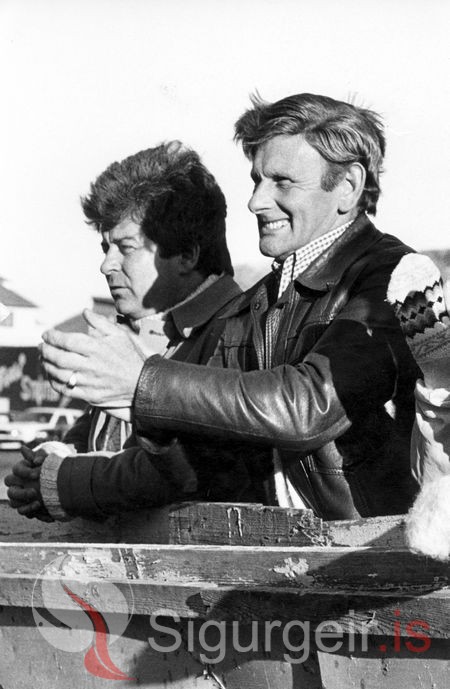 Tekin 27. ágúst 1980. Guðjón Pálsson, skipstjóri og Guðjón Magnússon, netagerðarmeistari, fylgjast grannt með fótbolta nálægt "Hólnum".