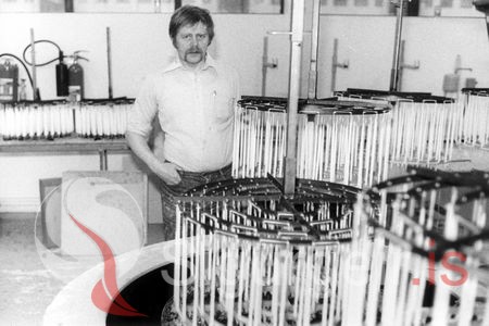 Tekin í Kertaverksmiðjunni Heimaey 15. nóvember 1984. Bjarni Jónasson.