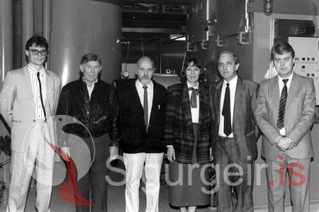 Tekin 25. nóvember 1988. Guðlaugur Sigurgeirsson, Sigurður Gunnarsson, Sveinn Tómasson, Helga Jónsdóttir, Eiríkur Bogason, veitustjóri og Arnaldur Bjarnason, bæjarstjóri.
