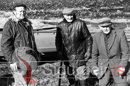 Tekin 6. október 1979. Feðgarnir Sveinn Hjörleifsson og Hjörleifur Sveinsson í Skálholti ásamt Bjarna Bjarnasyni í Breiðholti, dýralækni.