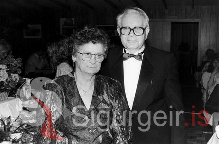 Tekin 9. desember 1989. Gunnlaug Einarsdóttir Höjgaard og Þórarinn Magnússon, kennari.
