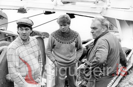 Tekin 24 júní 1986 um borð í Sigurfara VE-138. Magni Jóhannsson, Óðinn Kristjánsson og Bjarni Sighvatsson.