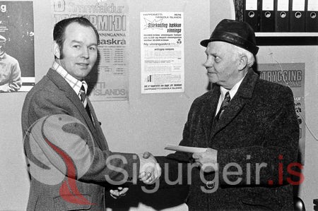 Tekin í desember 1975. Sveinbjörn Hjálmarsson og Gunnar Sigurmundsson, prentari.
