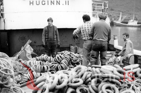 Tekin í maí 1972, í vertíðarlok um borð í Huginn VE-13. Stein I. Henriksen, Óli Sveinn Bernharðsson, Theodór G. Jóhannsson (Dódó), og Rögnvaldur Jóhannsson.