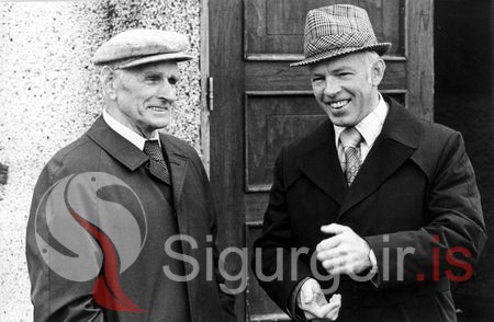 Myndin er tekin 1. júní 1980. Elías Sveinsson í Varmadal, skipstjóri og Guðjón Ármann Eyjólfsson, fyrrverandi skólastjóri Stýrimannaskólans í Vestmannaeyjum.