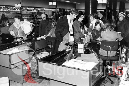 Lengst til vinstri er Svanhvít Þráinsdóttir, nafn vantar, Einar Friðþjófsson, Katrín Freysdóttir, Ingólfur Kristjánsson, Kristín Kristjánsdóttir, Maríanna Sigurðardóttir, Jónas Jónsson og Svava Guðmundssóttir?