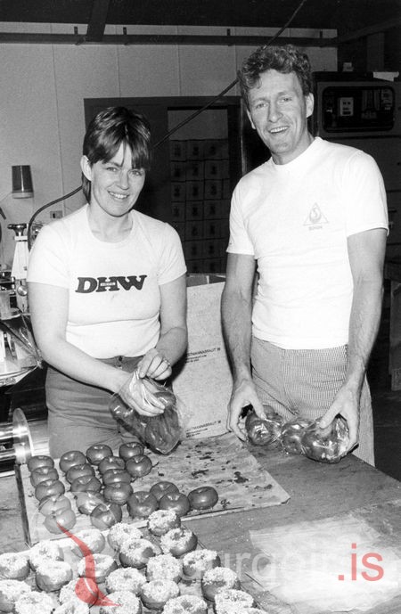 Tekin í Vilberg-kökuhúsi 17. október 1983. Vilborg Gísladóttir og Bergur Sigmundsson, bakari.