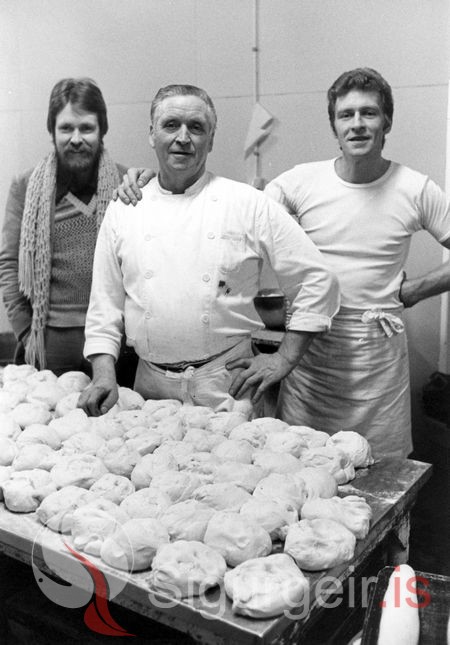 Tekin í Magnúsarbakaríi 29. desember 1978. Bakarameistararnir Andrés Sigmundsson, Sigmundur Andrésson og Bergur Sigmundsson.