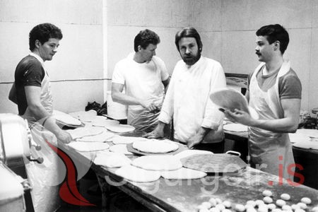 Tekin í Magnúsarbakaríi 31. mars 1982. Þröstur Guðlaugsson, Bergur Sigmundsson, Arndrés Sigmundsson og Arnór Hermannsson.