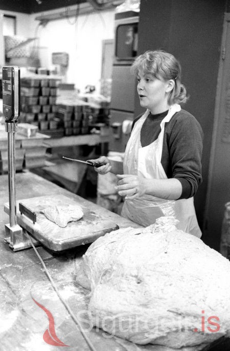 Tekin í Vilberg-kökuhúsi 9. apríl 1985. Elín Leifsdóttir.