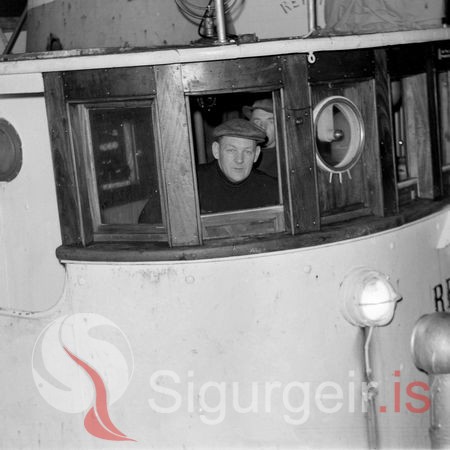 Páll Ingibergsson í Hjálmholti, skipstjóri á Reyni VE-15, á bakvið hann er bróðir hans Júlíus Ingibergsson.