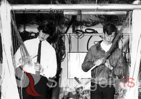 Myndin er tekin í maí 1969. Kristján Birgisson og Marinó Sigursteinsson, nemendur í Gagnfræðaskóla Vestmannaeyja.