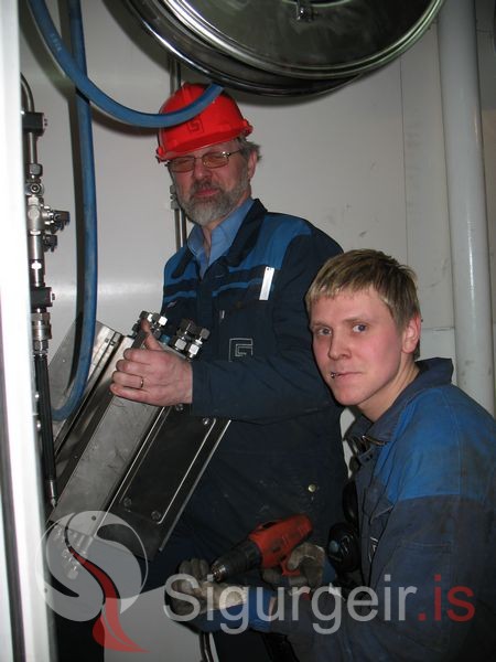 Tekin í janúar 2007 um borð í Guðmundi Ve. Hlynur Geir Richardsson og Hannes Kristinn Eiríksson, starfsmenn Skipalyftu Vestmannaeyja.