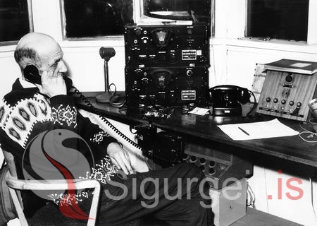 Tekin í gamla flugturninum í Vestmannaeyjum.