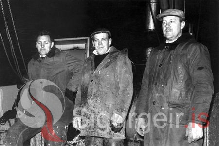 Kári Birgir Sigurðsson, vélstjóri, Magnús Magnússon og Helgi Bergvinsson, skipstjóri og aflakóngur.