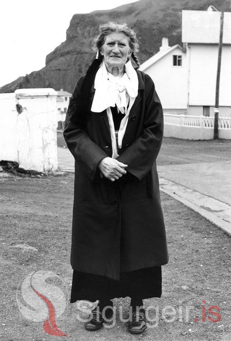 Sigríður Jónsdóttir, rúmlega 90 ára, prúðbúin á leið til kirkju.