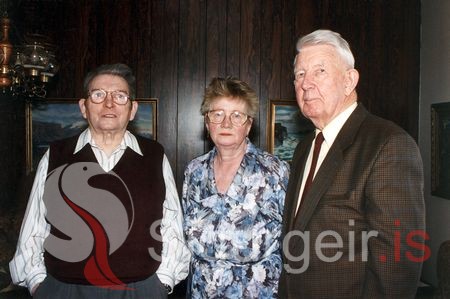 Jögvan Hansen, Ester Hjálmarsdóttir Hansen og Vilhjálmur Hjálmarsson frá Brekku, menntamálaráðherra.