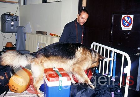Fíkniefnaleit á flugvellinum í Vestmannaeyjum.