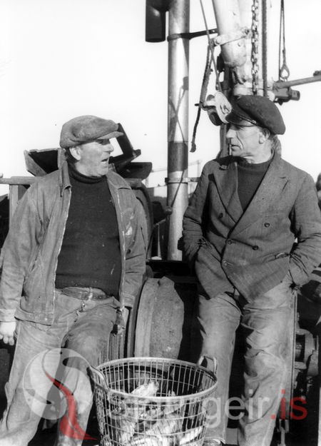 Tekin 1958, tvær þekktar kempur á leið út í Þrídranga.