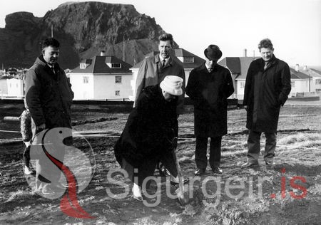 Fyrir aftan standa Þórhallur Jónsson, verkfræðingur og bæjarfulltrúarnir Jóhann Friðfinnsson, Sveinn Tómasson og Karl Guðjónsson.