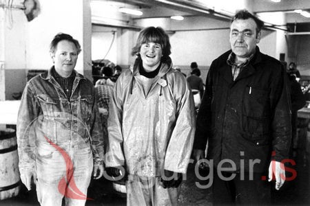 Tekin í Vinnslustöð Vestmannaeyja 10. nóvember 1977. Guðmundur Ásbjörnsson, Ólafur Pétur Sveinsson og Bjarni Sighvatsson.