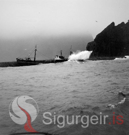 Tekin 12 janúar 1961. Belgískur togari, Marie Jose Rosette strandar við Vestmannaeyjar.