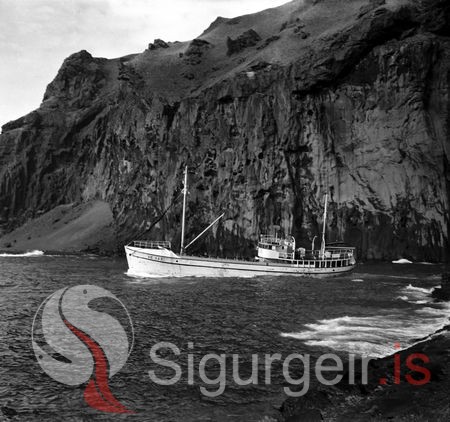 Tekin árið 1960. Helgi Helgason Ve. á leið inn í Vestmannaeyjahöfn.
