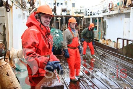 Tekin um borð í Jóni Vídalín VE-82, 31. maí 2006, á myndinni eru Kristleifur Ingi Lárusson, Guðmundur Pálsson frá Héðinshöfða og Jón, stýrimaður (föðurnafn vantar).