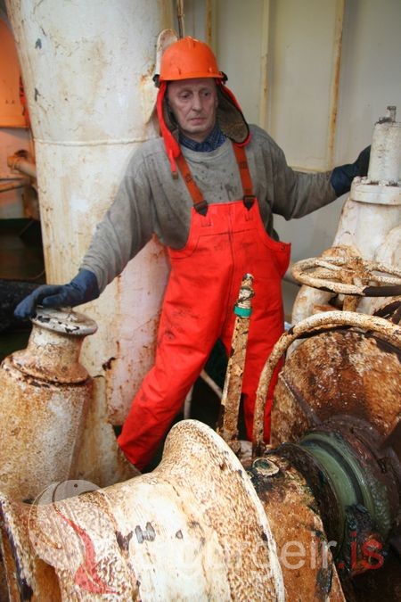 Tekin 31. maí 2006 um borð í Jóni Vídalín VE-82. Á myndinni er Guðmundur Pálsson frá Héðinshöfða.