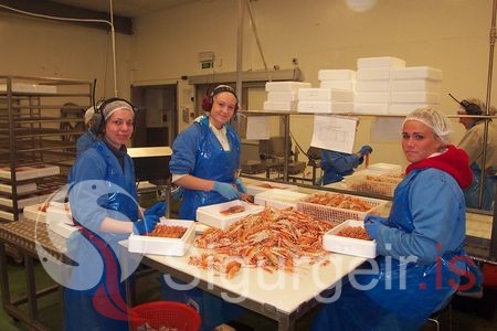Tekin í Vinnslustöð Vestmannaeyja í júní 2005 þar sem unnið var við að pakka humri.