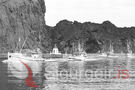 Bátarnir koma í land á sjóstangaveiðimóti. Baldur VE-24, Stígandi VE-77, Gullborg VE-38, Sigurbjörg VE-62, Júlía VE-123 og Hafliði VE-13.