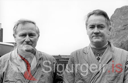 Tekin 9. maí 1986 í Lifrarsamlagi Vestmannaeyja. Hjörtur Guðnason og Vilhjálmur Stefánsson.