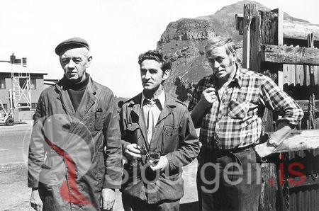 Tekin 8. júní 1977 við Lifrasamlag Vestmannaeyja. Sigurður Sigurjónsson, Alfreð Einarsson og Bernharð Ingimundarson.