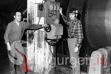 Tekin 1972 í Fiskimjölsverksmiðju Vestmannaeyja. Halldór Jónsson og Sigurður Jóhannsson frá Höfðahúsi.