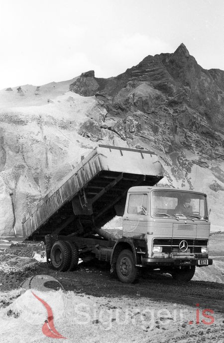 Tekin í mars 1970. Daníel Guðmundsson vörubílstjóri keyrir loðnu út á Eyju.