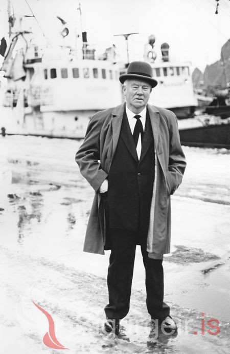 Ársæll Sveinsson á Fögrubrekku fyrir framan tvo af bátum sínum.